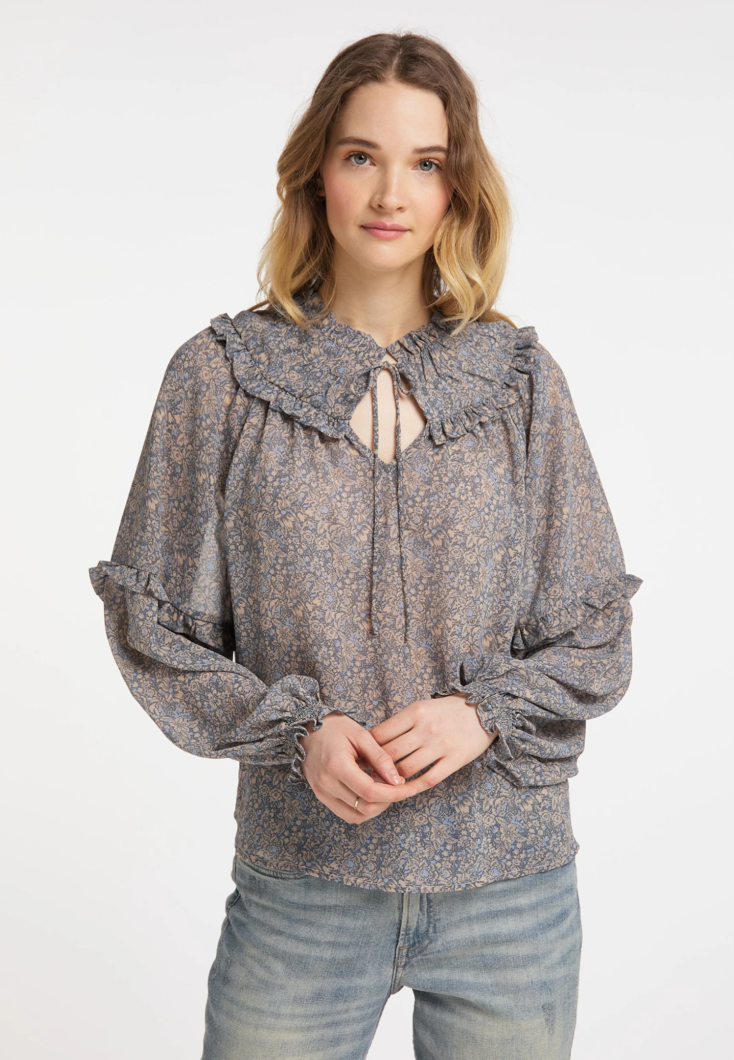 Dreimaster BolineCamicettaBeige Blau Donna Camicie E Bluse 4DR21E07V-B11