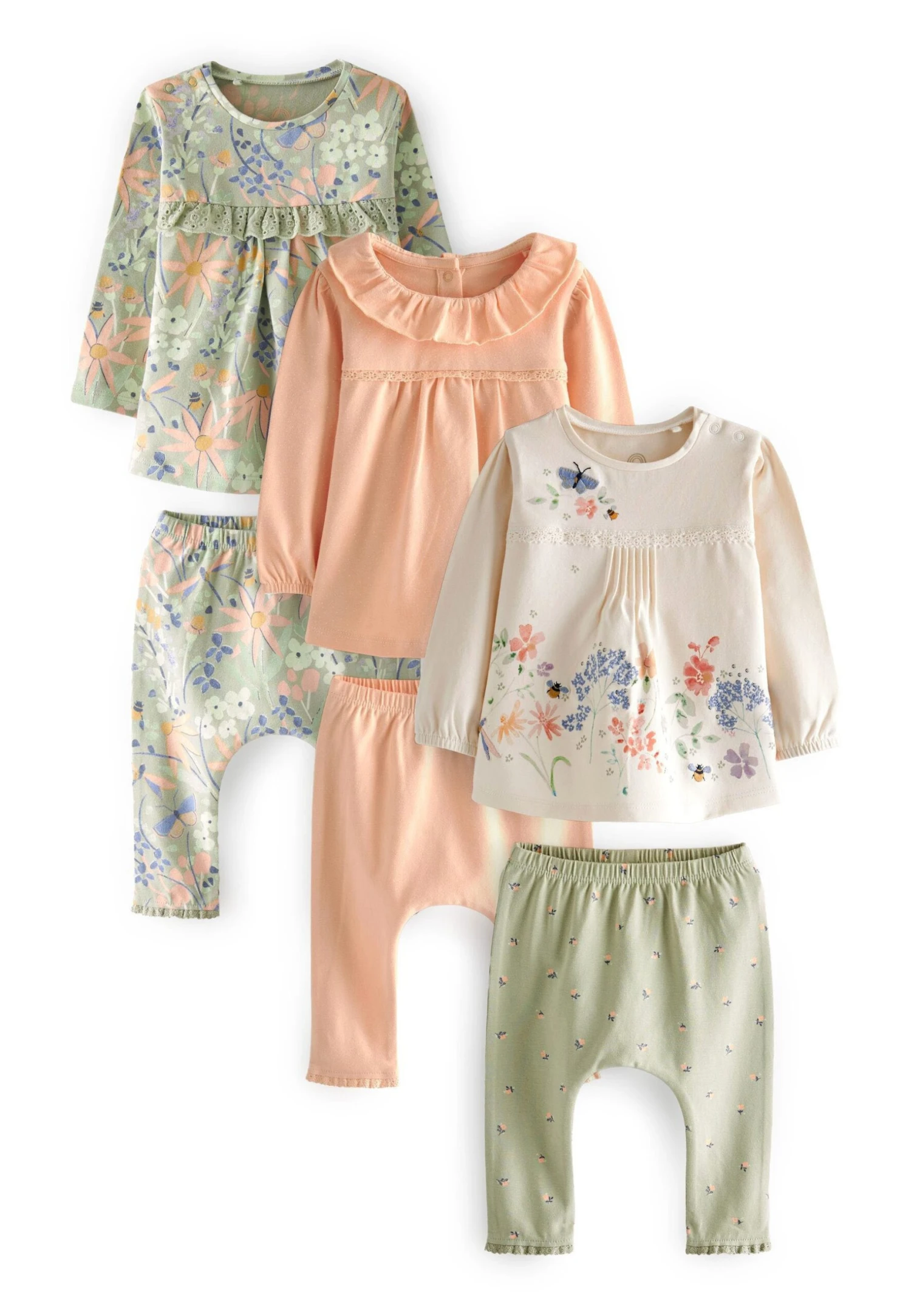 Next 6 Piece Baby T-Shirts And Leggings SetLeggingsGreen/White Floral Bambini Pantaloni NX323D1T1-M12